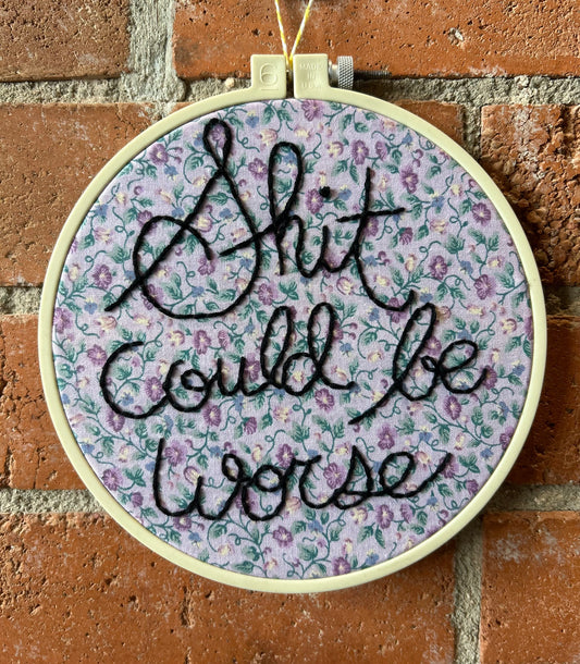 Handcrafted embroidery, pins, stickers, and art from Co-Conspirator of Odds and Ends, Erin Beedle. All of Erin's embroidery is made using second hand materials- either thrifted, scrap, salvaged or recycled. Every piece is unique.