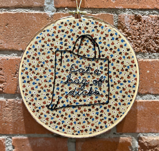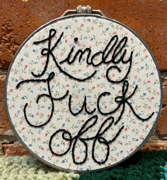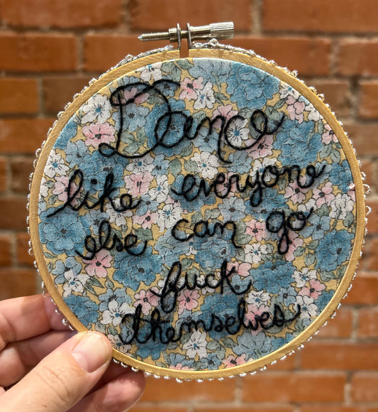 Handcrafted embroidery, pins, stickers, and art from Co-Conspirator of Odds and Ends, Erin Beedle. All of Erin's embroidery is made using second hand materials- either thrifted, scrap, salvaged or recycled. Every piece is unique.