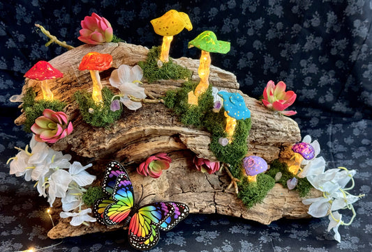 Keely Krueger- Handcrafted Mushrooms on Mirror Light