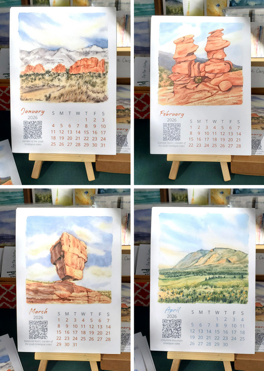 Ivywild Studio- 2026 Colorado Springs Landscape Watercolor Desktop Calendar
