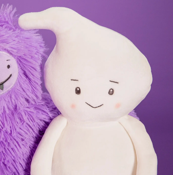 Say "boo" to your new best ghoul friend - Haun-Ted the Ghost! This squishy little spook is made from soft, stretchy white velour that's perfect for snuggles and squeezes. With sweet, embroidered features and a friendly smile, Haun-Ted is more heartwarming than haunting.