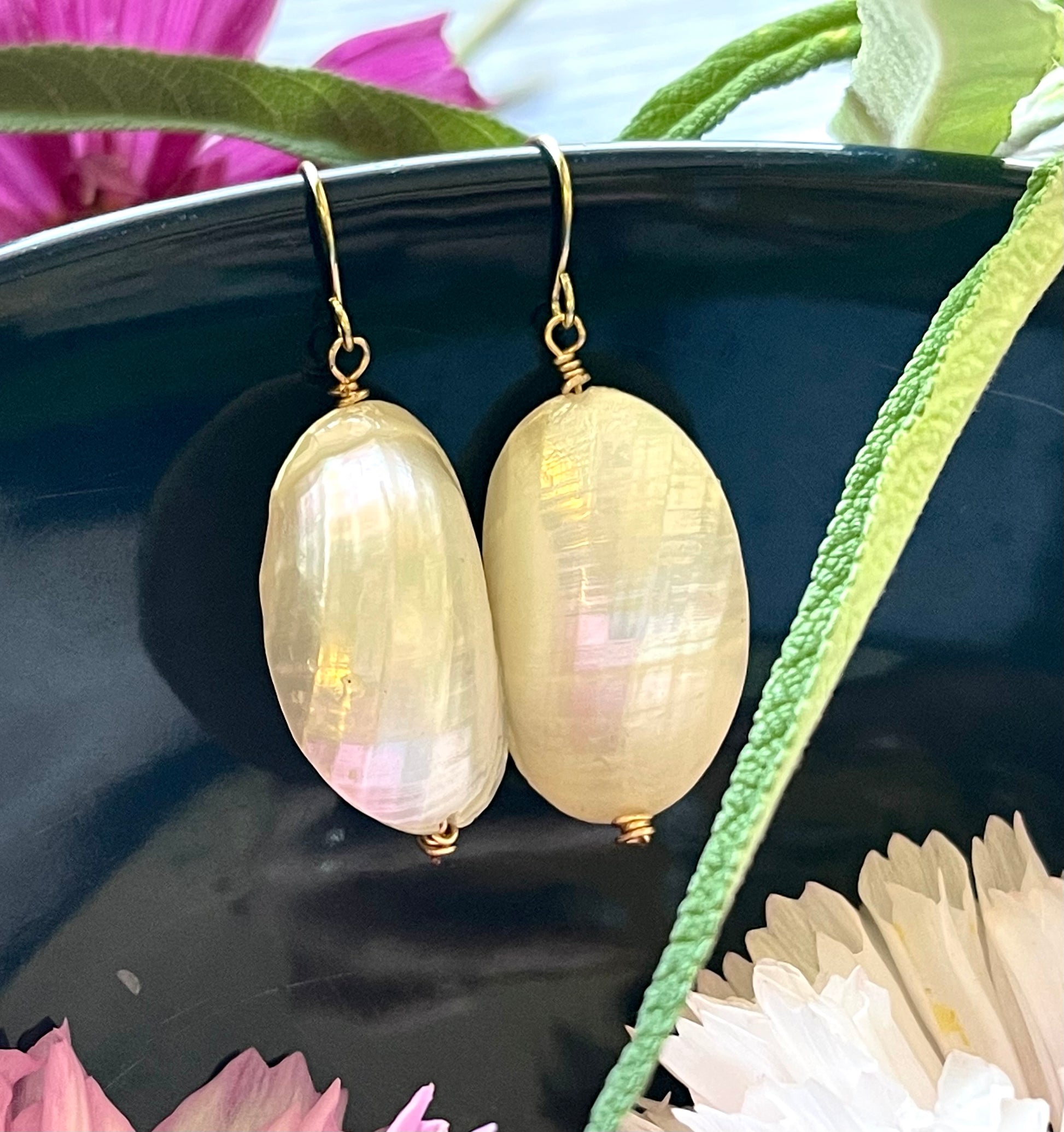 Blossom Designs Iridescent White Shell Dangle Earrings