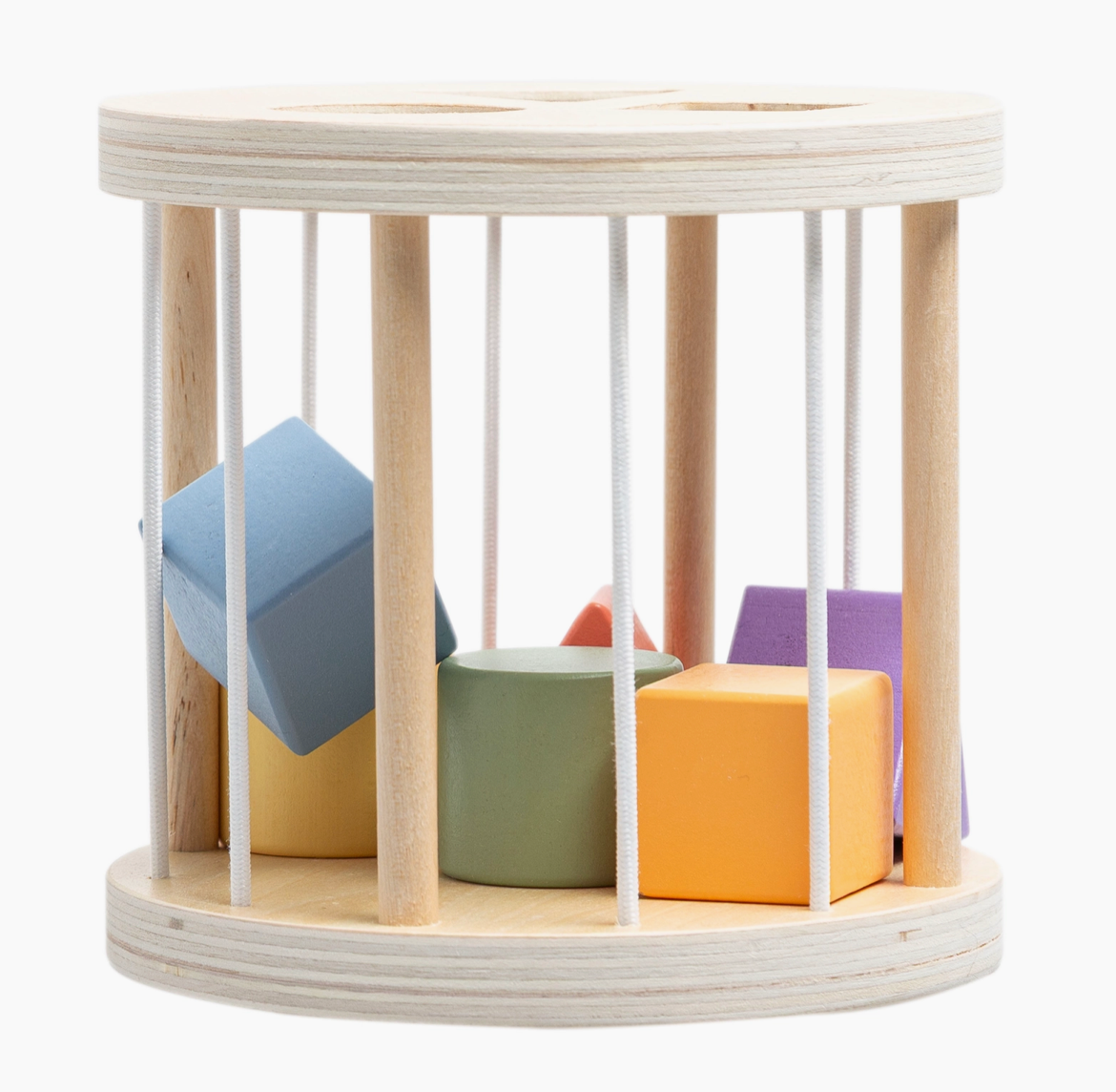 Includes six colorful wooden geometric shapes and a durable wooden cube with precision openings for matching and sorting. Encourages problem-solving, shape recognition, and early STEM exploration.