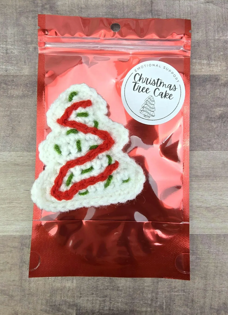 If you’re one of those people who counts down the days until Little Debbie Christmas Tree Cakes return, this crocheted cutie is your new best friend. Soft, squishy, and full of festive charm, it’s the perfect desk buddy, stocking stuffer, or travel companion for surviving holiday chaos with your snack-loving soul intact.