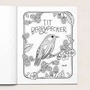 These gorgeous illustrations are printed on one side of the page so that you don't have to worry about markers or paints ruining the next illustration! Each page features a beautifully illustrated bird with its slightly pervy name! Try to say tit berrypecker with a straight face. We know you can't! How about the dickcissel or the cock of the rock? Were these birds named by ornithologists, or HORNI-thologists?